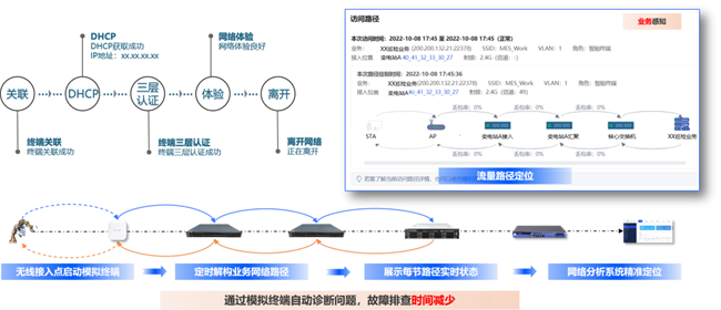 信锐方案可以在整体SDN网络架构下,利用AI能力帮助用户实现网络质量感知、节点通信能力;AI自主巡检可以快速定位到网络问题节点(图二),帮助用户快速定位问题,并且贴心为用户提供解决问题建议和方向,有效预防大规模网络问题出现。